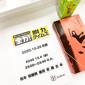 2020年11月30日 お知らせ メディア掲載情報 12/4 (金) 全力!脱力タイムズに出演します。 12月4日(金)23時より放送 全力!脱力タイムズ(フジテレビ) に弊社代表の松本が出演します。 ぜひご覧ください!